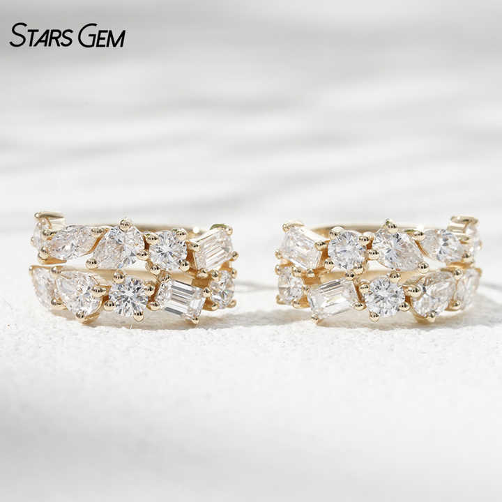 ต่างหูแบบหนีบหูทรงทันสมัยสำหรับทุกเพศ ทำจากทองคำแท้ 10K ประดับเพชรทรงแฟนซี 0.69 กะรัต เพชรเพาะเลี้ยงสีขาว D.E. จาก Starsgem ต่างหูหนีบสีสันสดใส