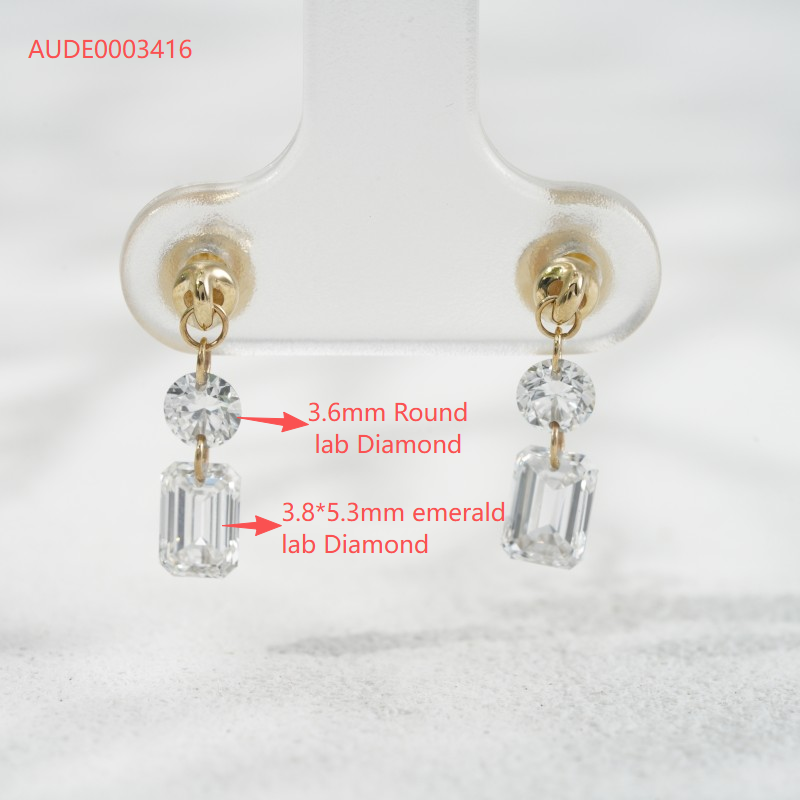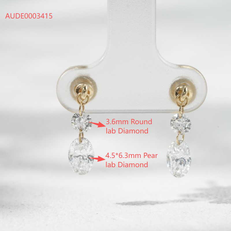 ต่างหูทอง 10k รุ่น Starsgem ประดับเพชรสองเม็ดทรงหยดน้ำ เพชรเลี้ยงในห้องปฏิบัติการ