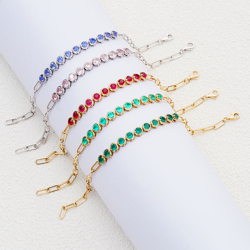 สร้อยข้อมือทองคำแท้ 14K ทรงกลม ประดับพลอยเพาะเลี้ยงในห้องปฏิบัติการ ขนาด 3.5 มม. จาก Starsgem