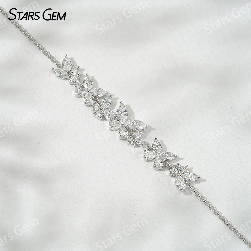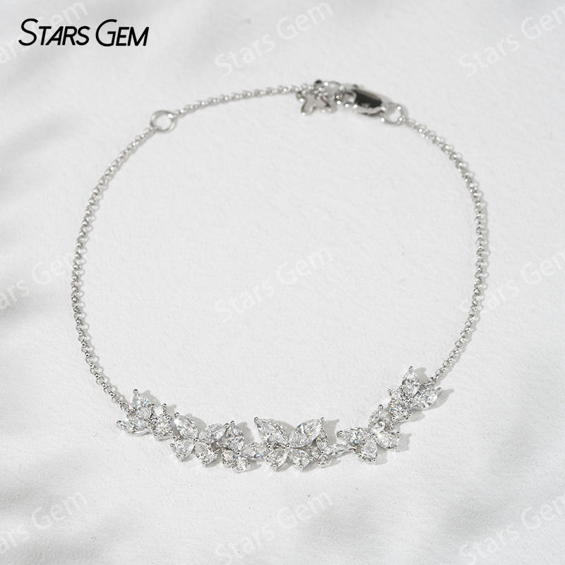 สร้อยข้อมือเพชรทรงมาร์ควิส 2.4 กะรัต ขนาด 3*6 มม. สี DEF ความสะอาดระดับ VS-VVS เพชรเลี้ยงในห้องปฏิบัติการ ทองคำขาว 18K จาก Starsgem ของขวัญเครื่องประดับหรูหราสำหรับทุกเพศ