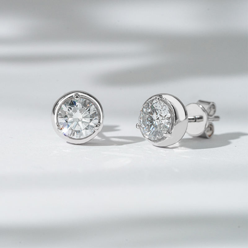 Starsgem 1ct 5.27mm Round Brilliant Cut Lab Grown Diamond Bezel Set 18K White Gold Diamond Stud Earrings