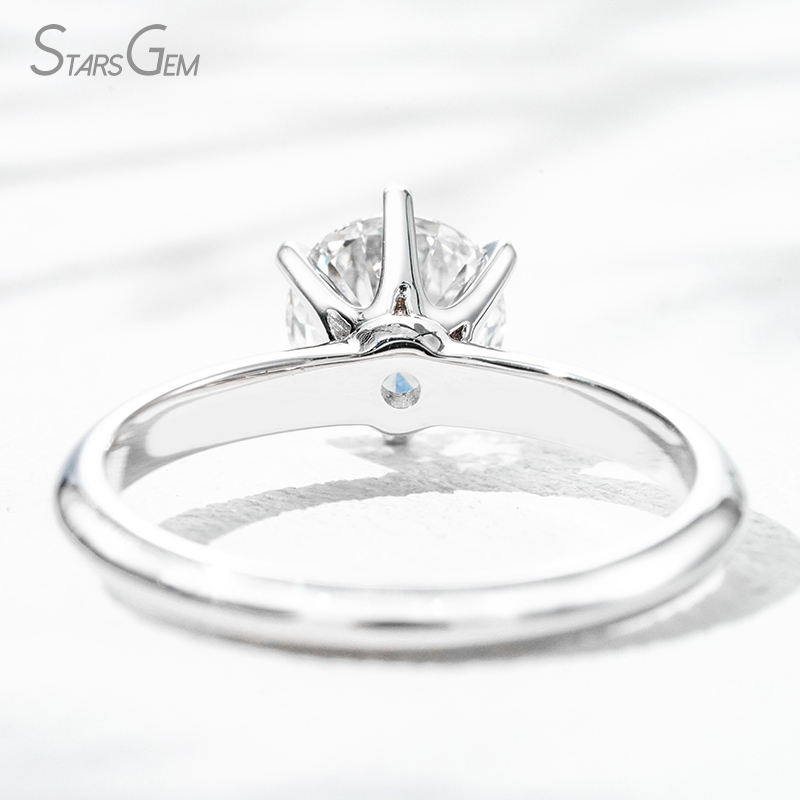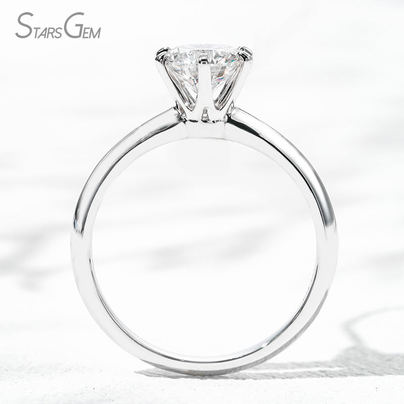แหวนหมั้นโซลิแทร์สุดหรู6 K ประดับเพชรทรงกลมขนาด6.4มม. สีสดใสในห้องปฏิบัติการ