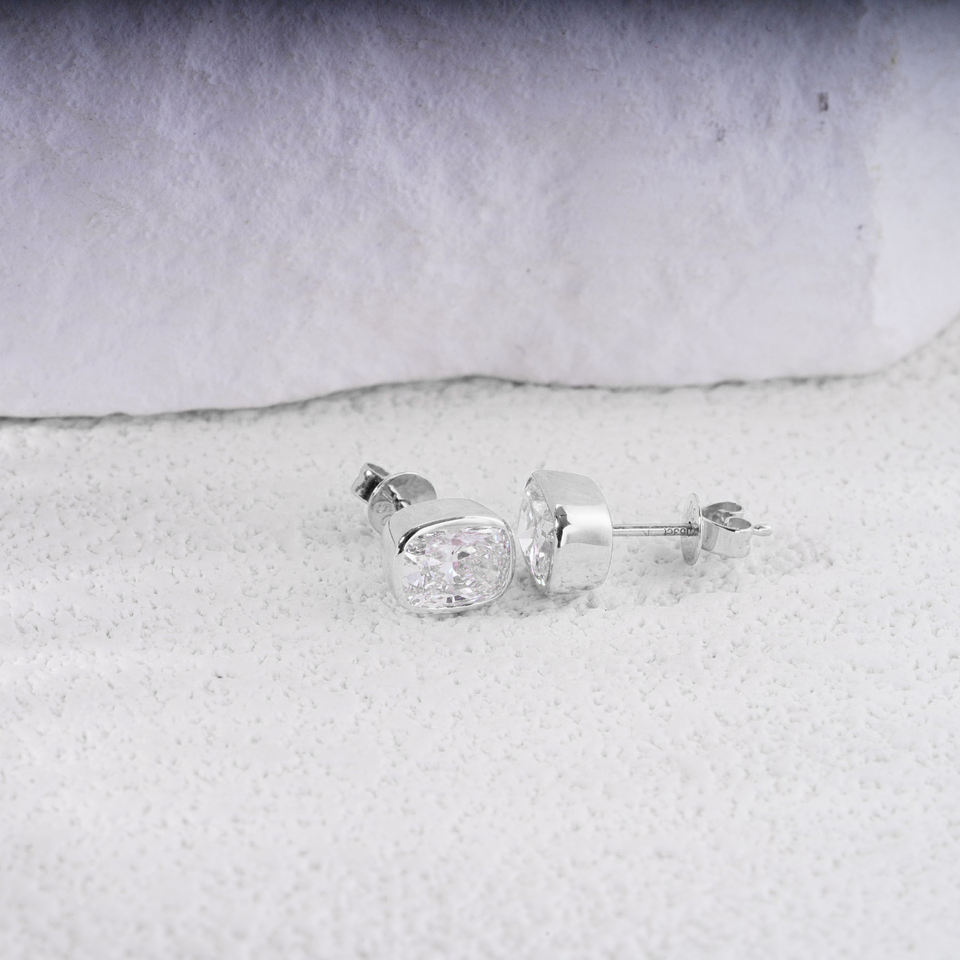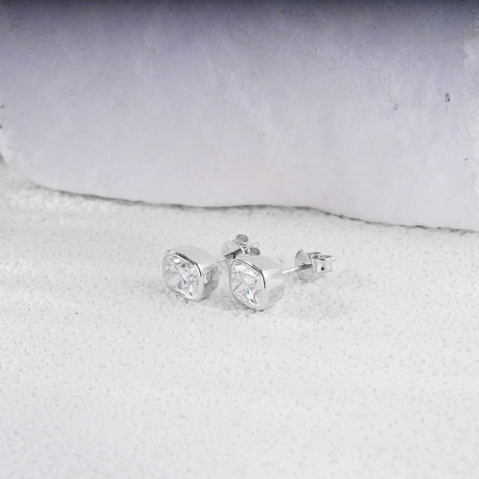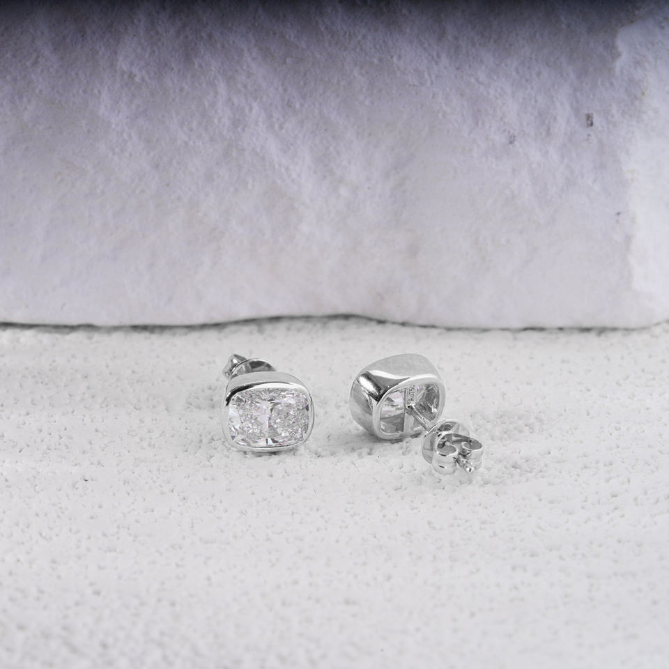 ต่างหูเพชรทรงคุชชั่น 2 กะรัต 5.4*6.7 มม. จาก Starsgem เพชรเลี้ยงในห้องปฏิบัติการ ตัวเรือนทองคำขาว 18K แบบคลาสสิกสำหรับทั้งชายและหญิง