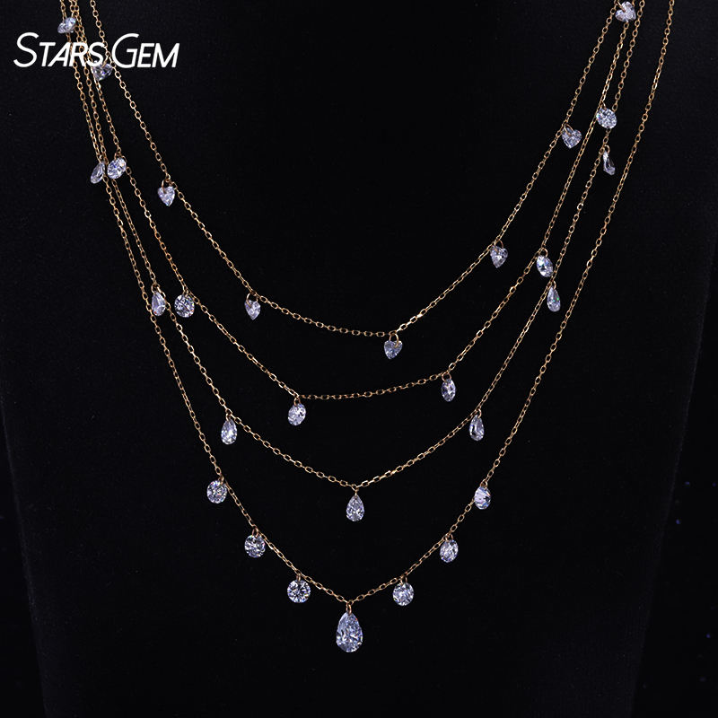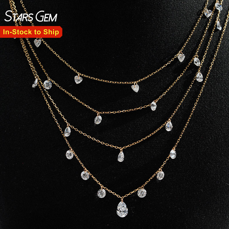 สร้อยคอทองคำ 10K น้ำหนัก 1 กรัม แบบปรับได้ ประดับเพชรขาวทรงบริลเลียนท์คัต ผลิตในห้องปฏิบัติการ สี D ของ Starsgem Luxury สำหรับทั้งชายและหญิง