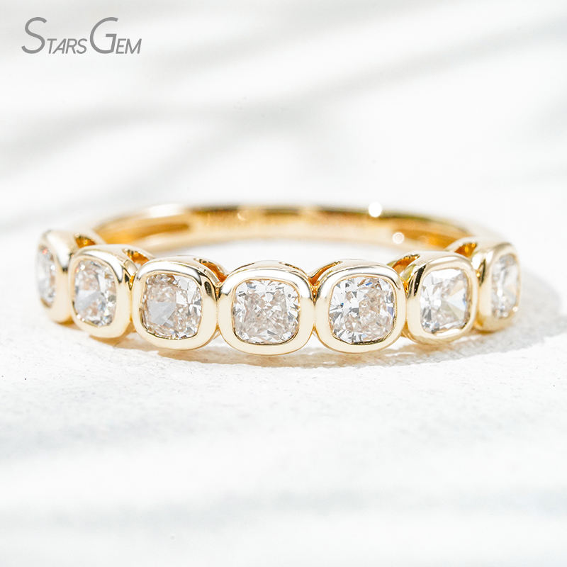 Starsgem พร้อมส่ง14K ฝาทองตั้งค่าเบาะตัด3mm ในห้องปฏิบัติการที่ปลูกเพชรเครื่องประดับดีครึ่งนิรันดร์แหวนแต่งงาน