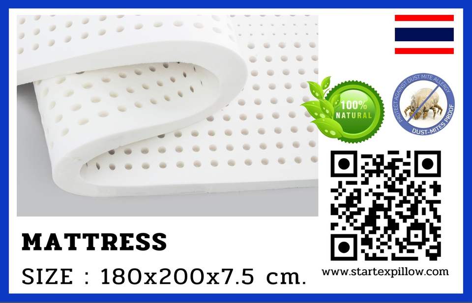 ที่นอนยางพาราธรรมชาติ100% ไทยขนาด180x200x7.5ซม. การรักษาป้องกันไฟฟ้าสถิตย์ล้างทำความสะอาดได้ป้องกันไฟฟ้าสถิตย์