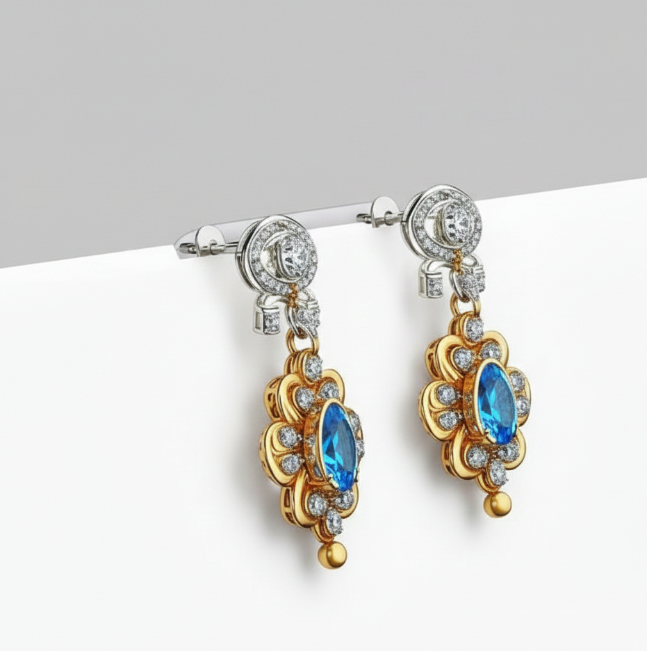 ต่างหูทรงหยดน้ำประดับบลูโทแพซ CZ ขนาด 4 นิ้ว ทำจากเงินแท้ 925 ชุบทอง 18K เหมาะสำหรับงานปาร์ตี้ งานแต่งงาน ของขวัญสำหรับเธอ