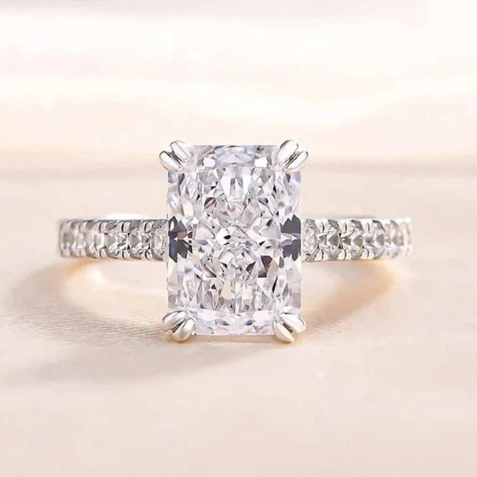 6.03กะรัตยาวตัดเพชรโมอิส925สีเงินพร้อมขายาวประดับด้วยเพชรเม็ดเดี่ยวดูกรงเล็บคู่
