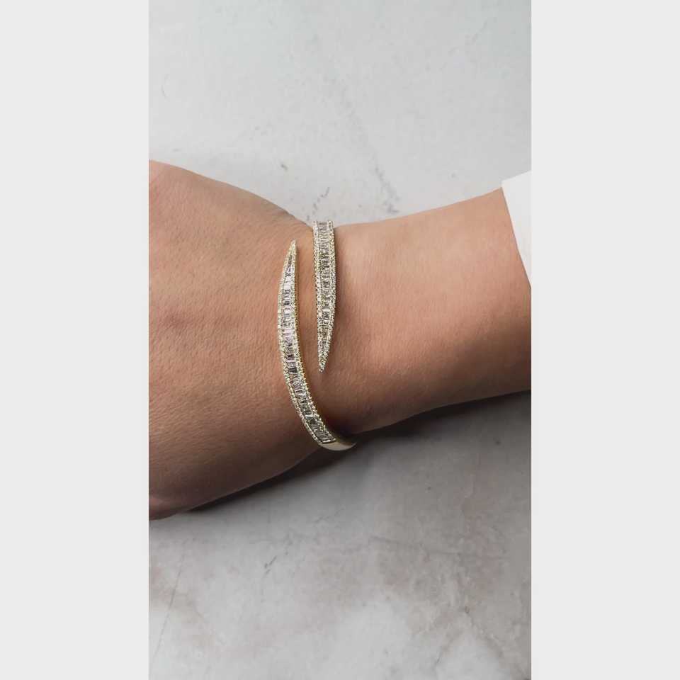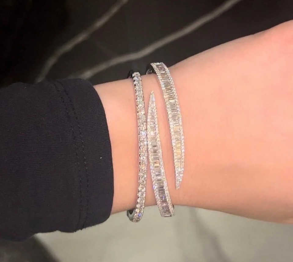 กำไลข้อมือประดับเพชรเลี้ยงในห้องปฏิบัติการ 4.56 กะรัต ทรงกลมเจียระไนแบบบริลเลียนท์ สี DEF เงินแท้ น้ำหนัก 18 กรัม สำหรับผู้หญิง แบรนด์ Vala Brothers ขายส่งจำนวนมาก