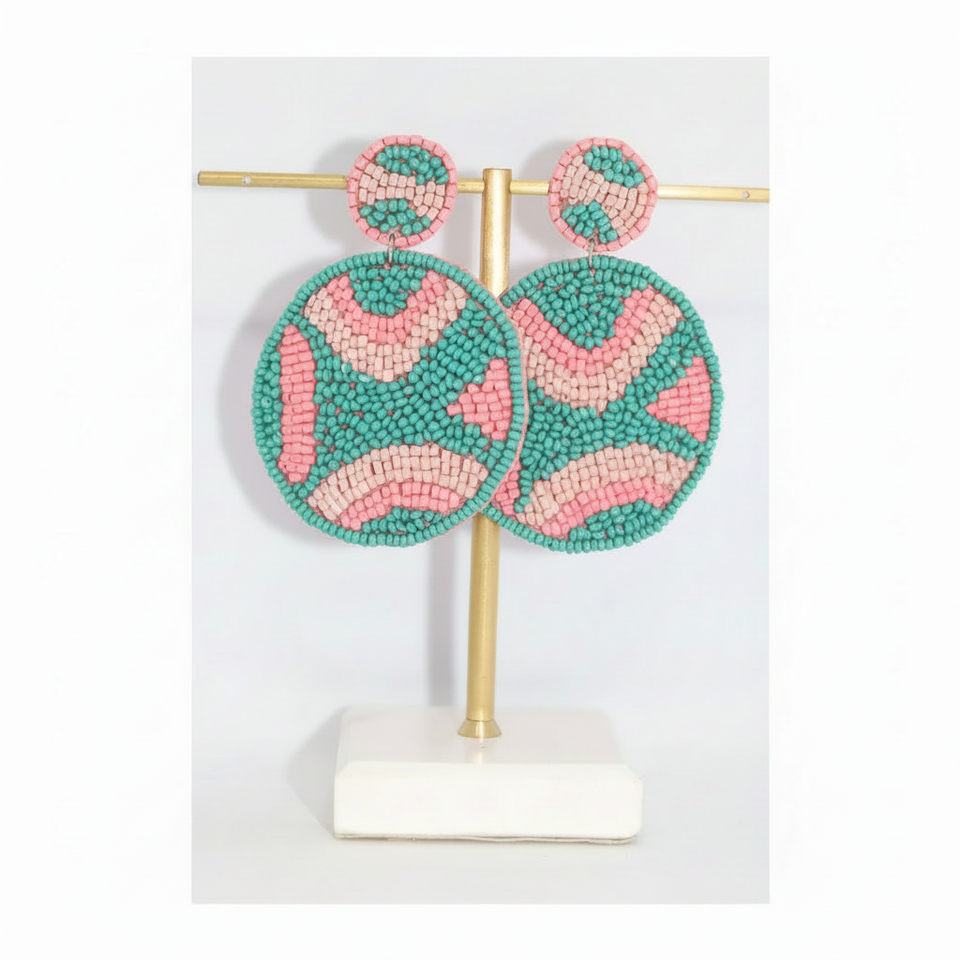 Statement Earrings with Intricate Glass Seed Bead Embroidery Handmade Lightweight Jewelry for Party Use