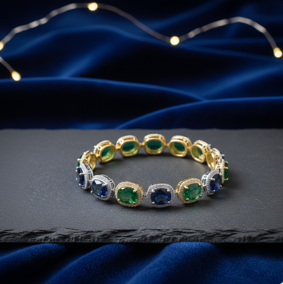 กำไลข้อมือไฮโดรสีเขียวและน้ำเงินประดับเพชร CZ เงินแท้ 925 ดีไซน์เนอร์ เจมสโตน คาด้า สำหรับผู้หญิง