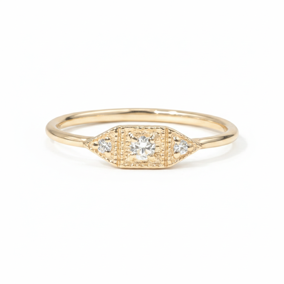 แหวนเพชรสามเม็ด แหวนเพชรแล็บ ทองคำแท้ 18K สีเหลืองทอง วินเทจ ทรงกลมเจียระไนแบบบริลเลียนท์ แหวนเพชรแล็บสำหรับงานแต่งงาน
