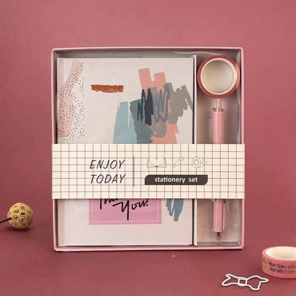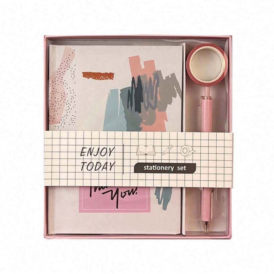 ชุดเครื่องเขียนสำหรับโรงเรียน เป็นมิตรกับสิ่งแวดล้อม ของขวัญน่ารักสำหรับเด็ก ปากกาลูกลื่นสีชมพู กล่องพลาสติกทนทาน
