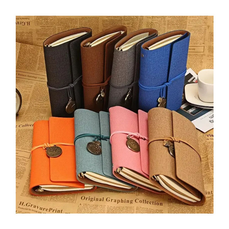 อุปกรณ์เครื่องเขียนที่ถอดออกได้สมุดไดอารี่ที่กำหนดเองได้ A6สมุดบันทึกที่ทำจากผ้าฝ้ายลินินและเชือก