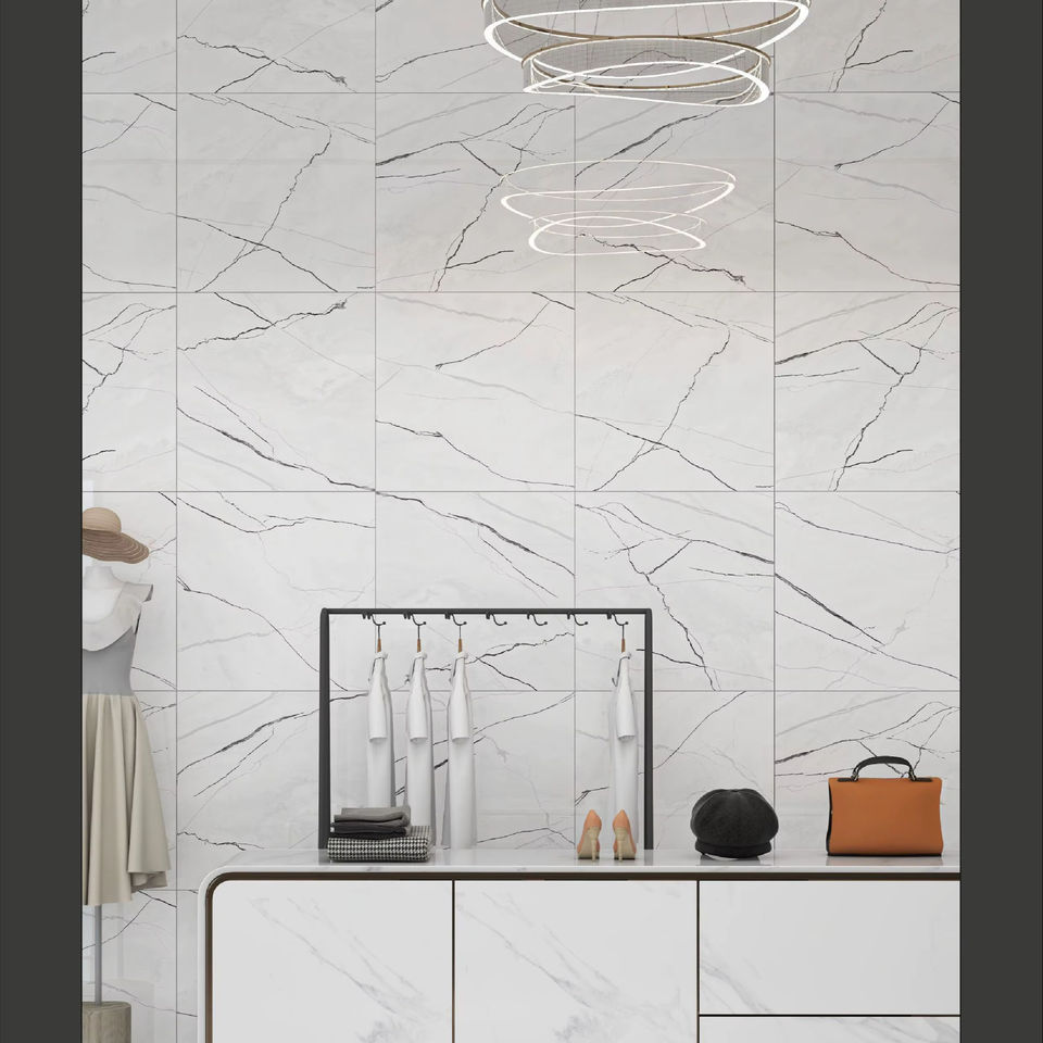 Statuario กระเบื้องลายหินอ่อนสีขาวขนาด600x600มม. สำหรับตกแต่งภายในโรงแรมวิลล่าอพาร์ทเมนต์กาวในห้อง