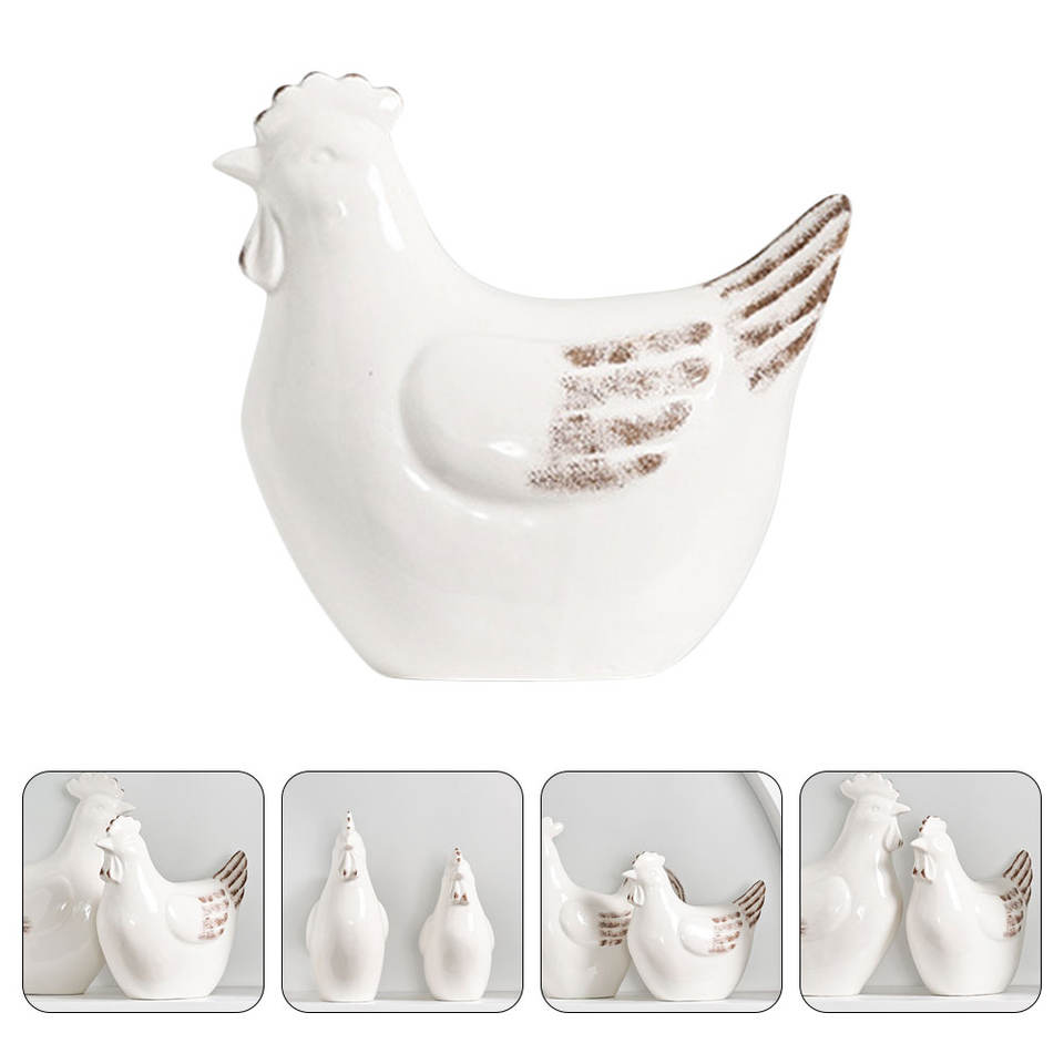 งานหัตถกรรมตกแต่งรูปปั้นแม่ไก่สีขาวสำหรับตกแต่งบ้านสวนรูปปั้นนกทำด้วยมือ