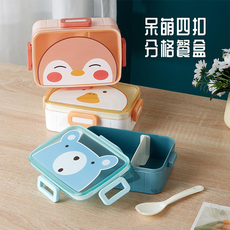 กล่องอาหารกลางวันแบบแบ่งเป็นรูปการ์ตูนน่ารักสไตล์ญี่ปุ่นกล่องอาหารกลางวันแบบหัวเข็มขัดรูปหมีกล่องอาหารกลางวันสำนักงานกล่องเบนโตะอาหารกลางวันเข้าไมโครเวฟได้