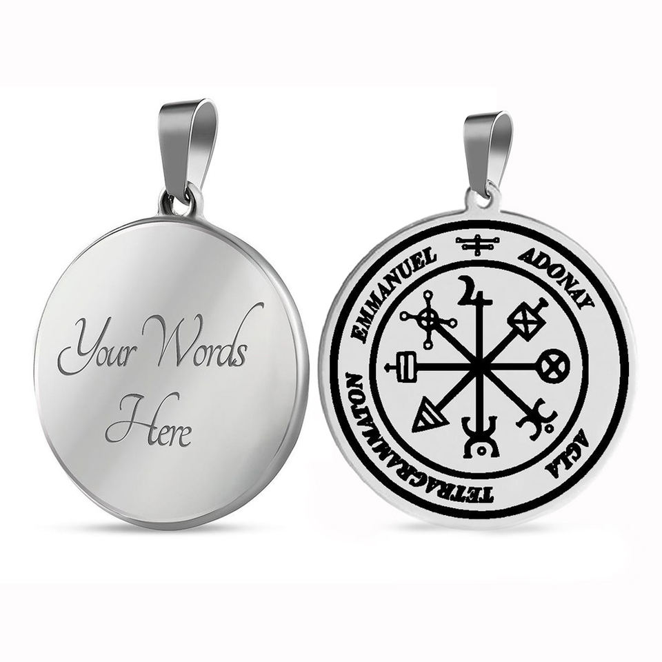 สร้อยคอจี้สแตนเลสสตีลลายเลเซอร์ อย่าใหโรคภัยเข้าใกล้ อะโดเนย์ อาไกล ทีทรากรามเมตัน เอ็มมานูเอล ของขลัง