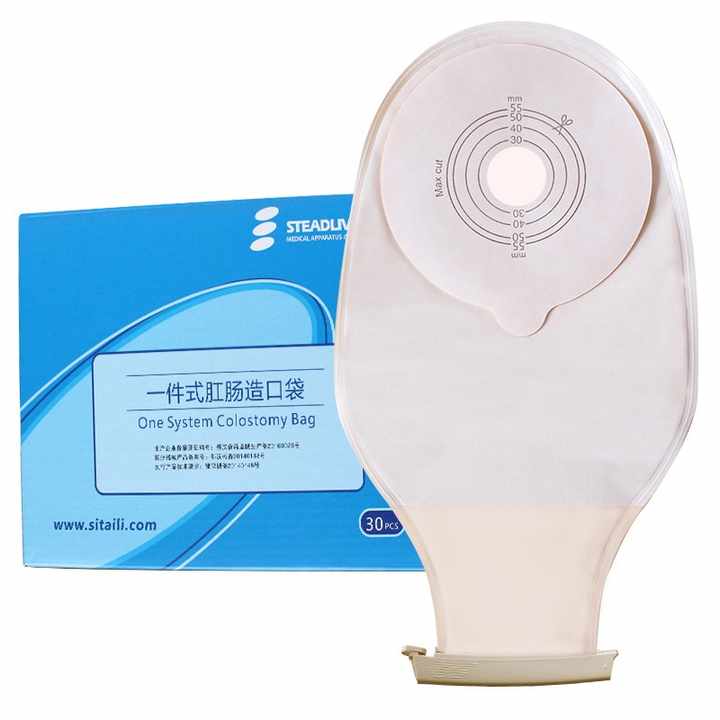 ถุงใส่ของเสียทางลำไส้ใหญ่แบบชิ้นเดียว ขนาด 55 มม. ยี่ห้อ Steadlive Comfortable แบบระบายน้ำได้ ใช้ซ้ำได้ พร้อมไส้กรองคาร์บอนและฟิล์ม EVOH ทึบแสง