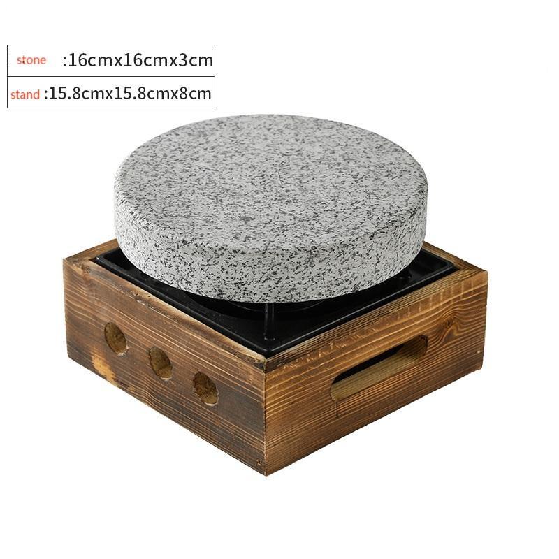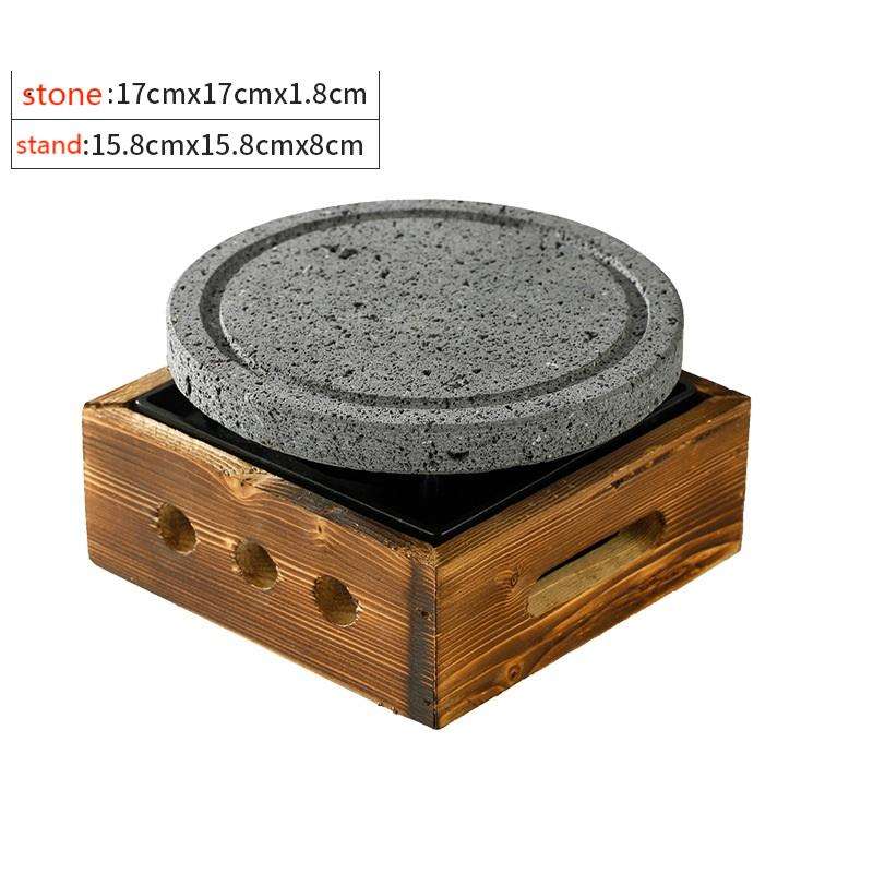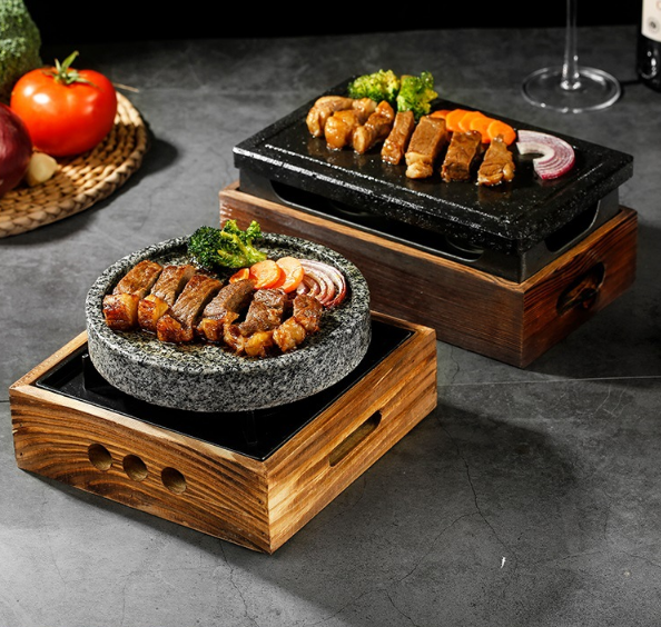ร้านสเต็ก หินแกรนิตร้อน หินลาวาสำหรับย่างสเต็ก แผ่นหินย่างทรงสี่เหลี่ยมและทรงกลม พร้อมเตาแอลกอฮอล์
