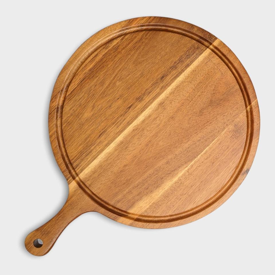 จานเสิร์ฟสเต็กและชีสเค้กมีด้ามจับถาดไม้บอร์ดชีสอะคาเซีย