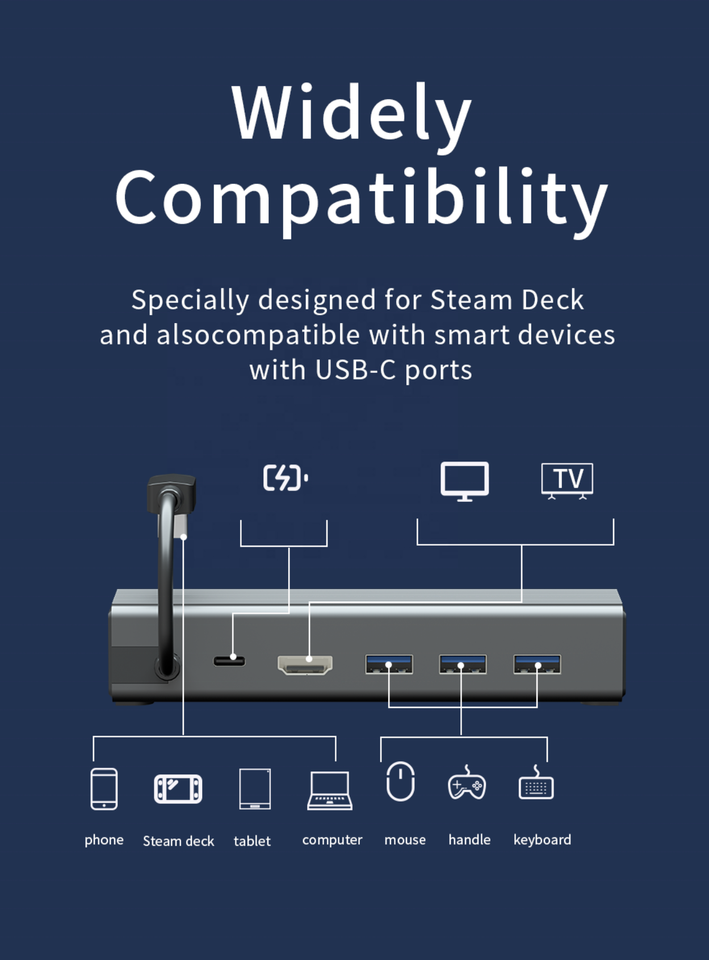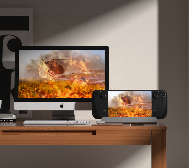 แท่นวางไอน้ำ,แท่นวางทีวีแท่นวางอลูมิเนียมแบบ5 In 1 60Hz HD-MI ใช้งานได้ USB-C สำหรับคอนโซลบนดาดฟ้าไอน้ำ
