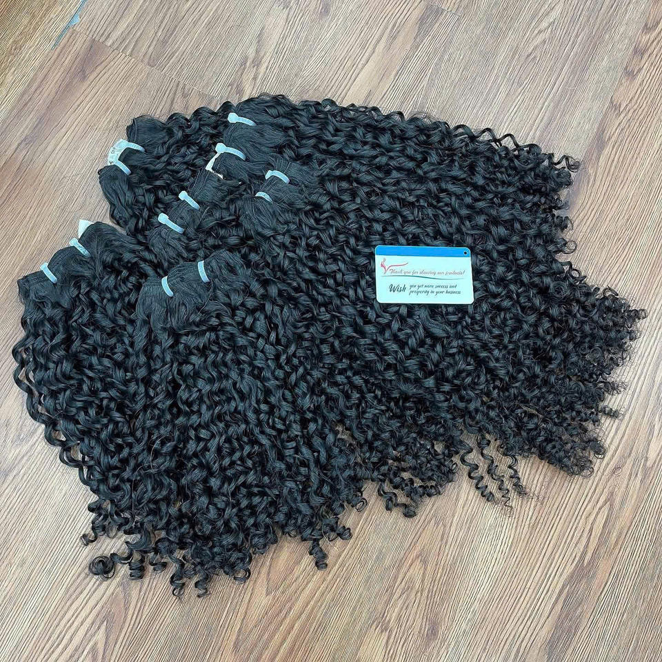 วิกผมหยิกเป็นลอนสีดำธรรมชาติสำหรับต่อผมยาวถึง30% พร้อมส่ง