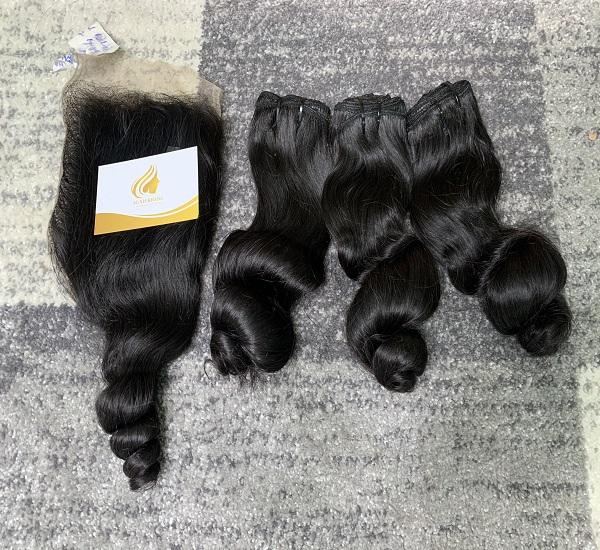 ผมเรมี่แท้ไม่ผ่านกระบวนการนึ่งไม่ผ่านการทำเคมีเป็นลอนหยิกทำจากเวียดนามมีหลายสี