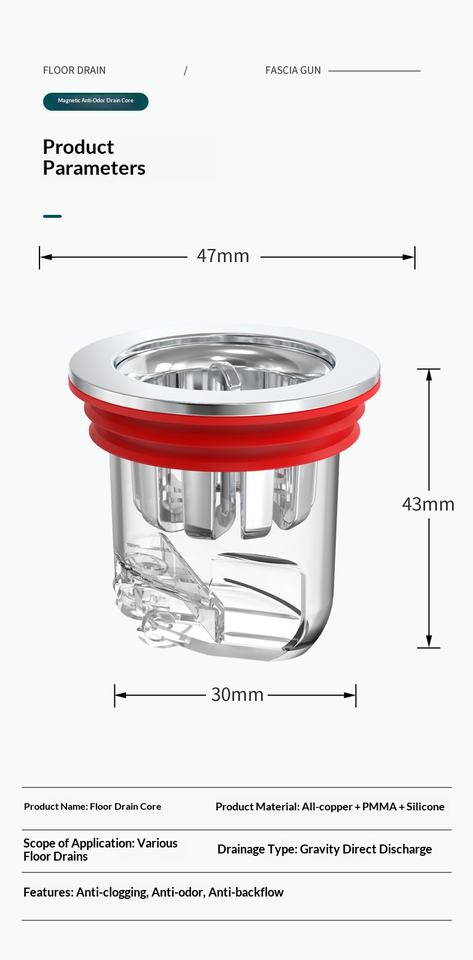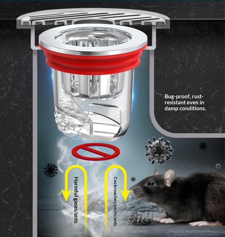 แกนดักกลิ่นพื้นห้องน้ำแบบเหล็ก ป้องกันกลิ่นย้อนกลับ ป้องกันแมลงและกลิ่นไม่พึงประสงค์