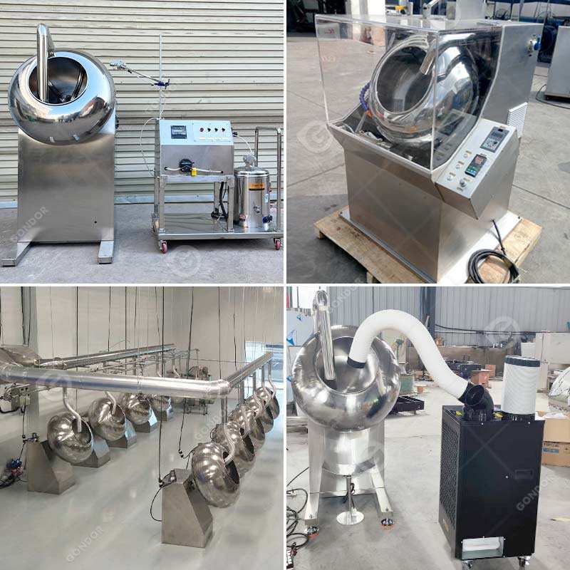 เครื่องเคลือบผิวขนมขบเคี้ยวอัตโนมัติขนาดเล็กสำหรับน้ำตาล ถั่ว ถั่วลิสง เมล็ดพืช ช็อกโกแลต ทำจากเหล็ก พร้อมจำหน่าย