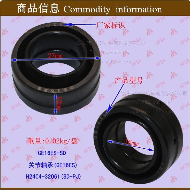 ตลับลูกปืนเม็ดกลมเหล็ก ตลับลูกปืนแบบเรียบทรงกลม ตลับลูกปืนข้อต่ออเนกประสงค์ ตลับลูกปืนข้อต่อเรเดียล ตลับลูกปืนข้อต่อแบบเรเดียล GE16ES-SD แบบเลื่อน ทำจากทองแดง