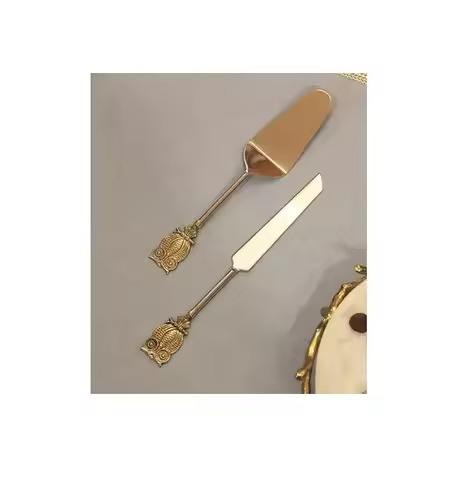 ชุดที่ตักเค้กเหล็กพร้อมด้ามจับทองแดงขัดเงาสำหรับงานปาร์ตี้กลางแจ้ง