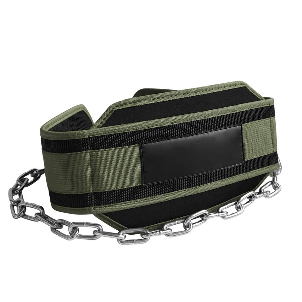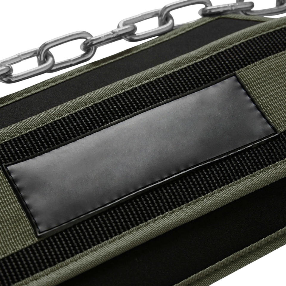 สายคาดทำจากนีโอพรีนสายโซ่เหล็กสีเขียวมะกอกระบายอากาศได้อุปกรณ์เสริมสำหรับออกกำลังกายในยิมที่รองรับหลัง