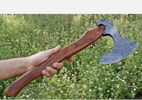 ขวานโทมาฮอว์กเหล็กดามัสกัสทำมือจาก Steel Craft International หัวขวานตีขึ้นรูปด้วยมือ คุณภาพระดับอุตสาหกรรม สำหรับกิจกรรมกลางแจ้งและตั้งแคมป์ ด้ามไม้แอช