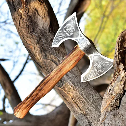 โทมาฮอว์กส์ใบมีดคู่งานหัตถกรรมเหล็กเหล็กเหล็กดามัสกัสเกรดอุตสาหกรรม