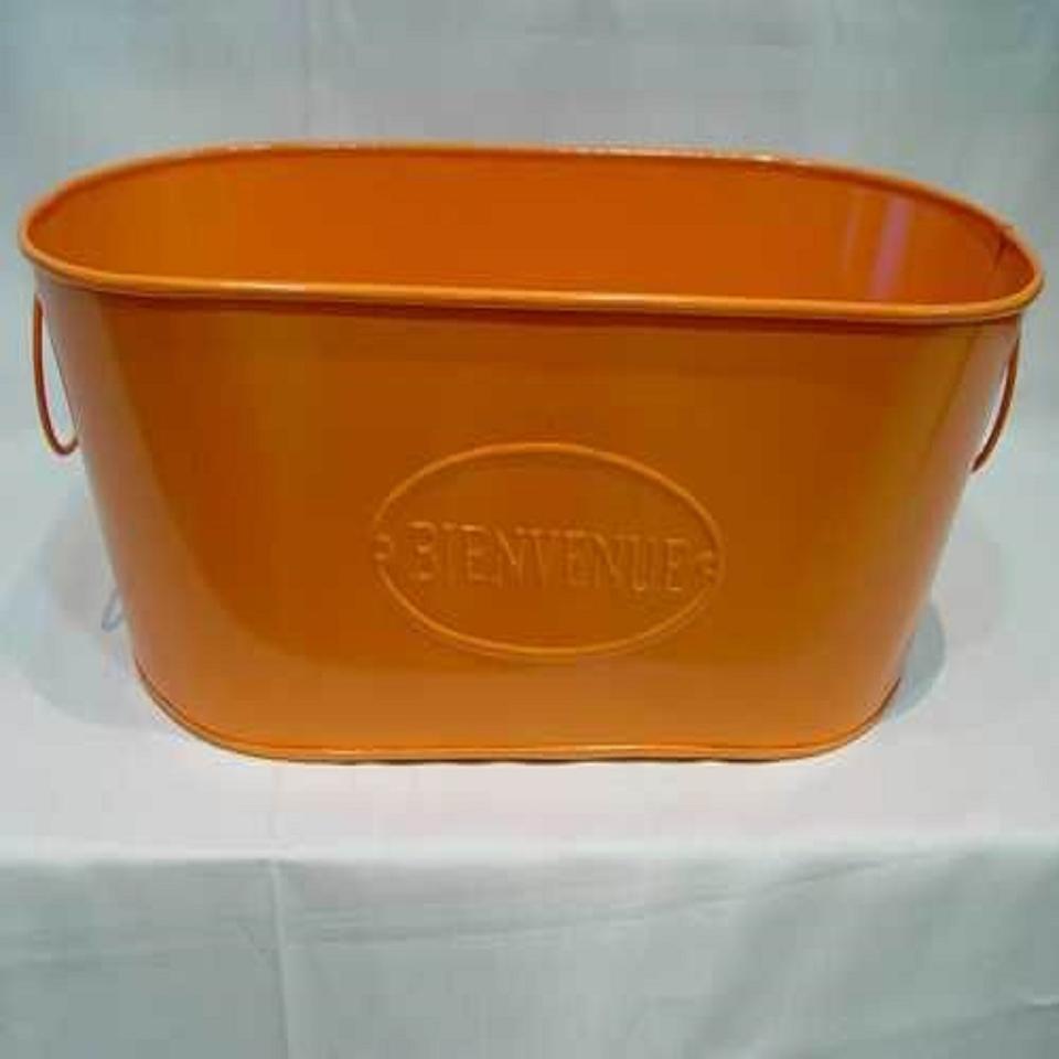 กระถางเหล็กชุบสังกะสีทรงกลมพร้อมที่จับตกแต่งด้วยกรด
