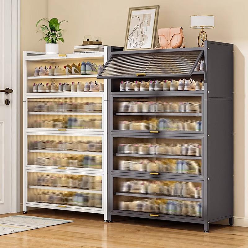 ตู้รองเท้ากันฝุ่นเหล็ก ความจุขนาดใหญ่ หลายชั้น สำหรับจัดเก็บของบริเวณทางเข้า แบบตั้งพื้น รูปทรงสี่เหลี่ยมผืนผ้า