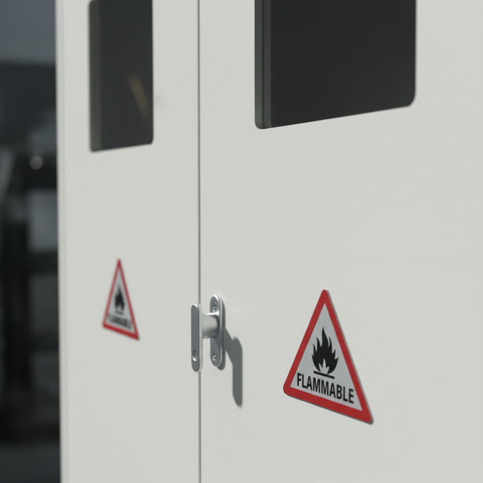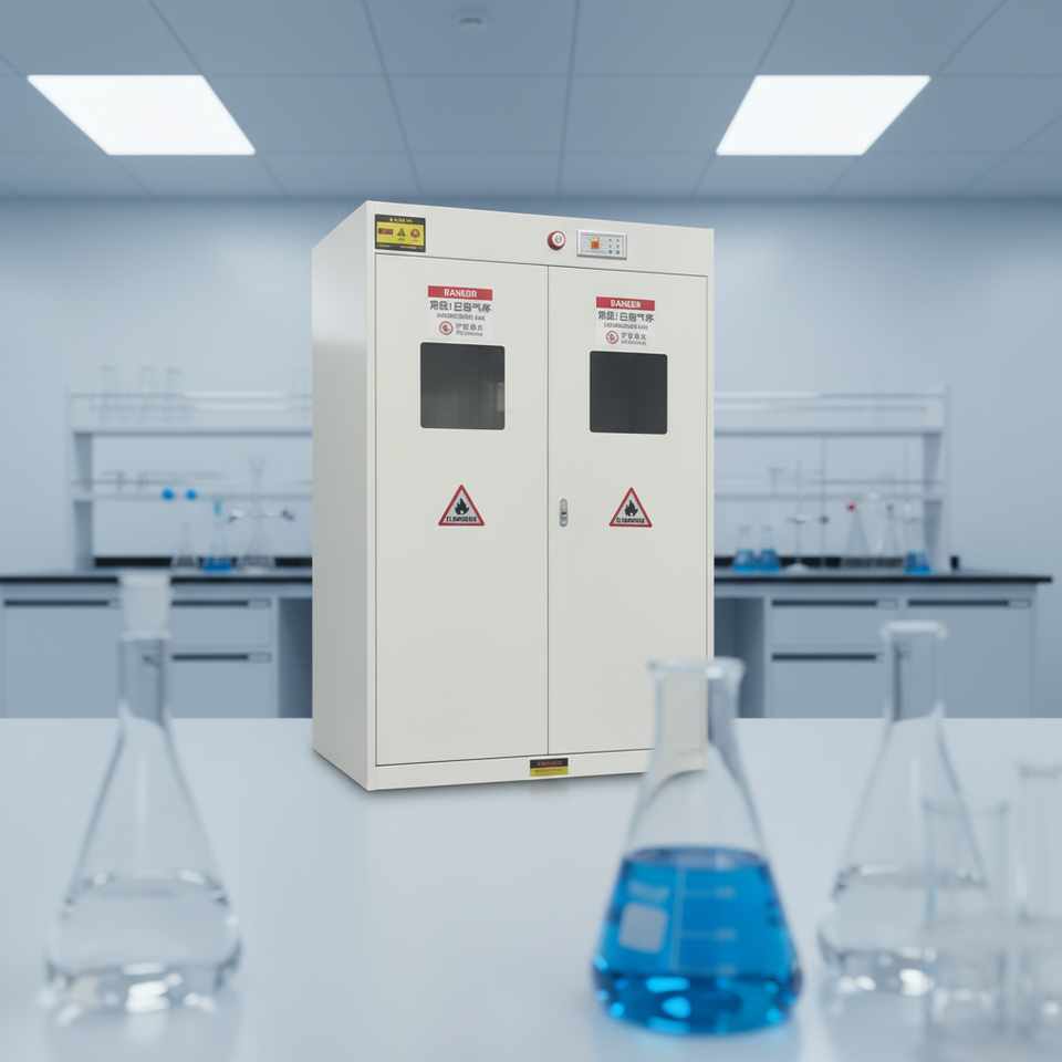 ตู้เก็บถังแก๊สเหล็กป้องกันการระเบิด สำหรับถังแก๊สสองถัง ตู้เก็บสารเคมีโลหะเพื่อความปลอดภัย