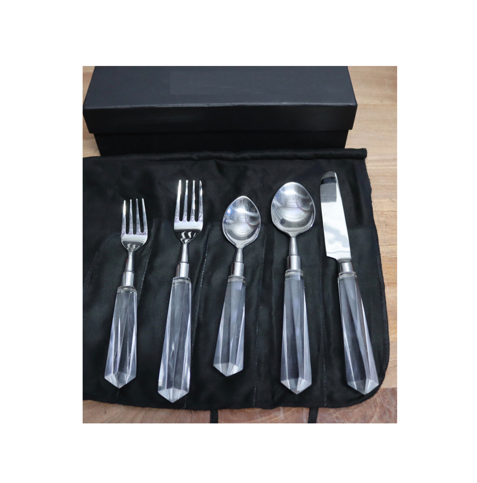 ชุดส้อมเหล็ก Flatware พร้อมที่จับอะคริลิค ช้อนอาหารเย็นและส้อมคุณภาพสูงพร้อมที่จับสําหรับการขายร้อน
