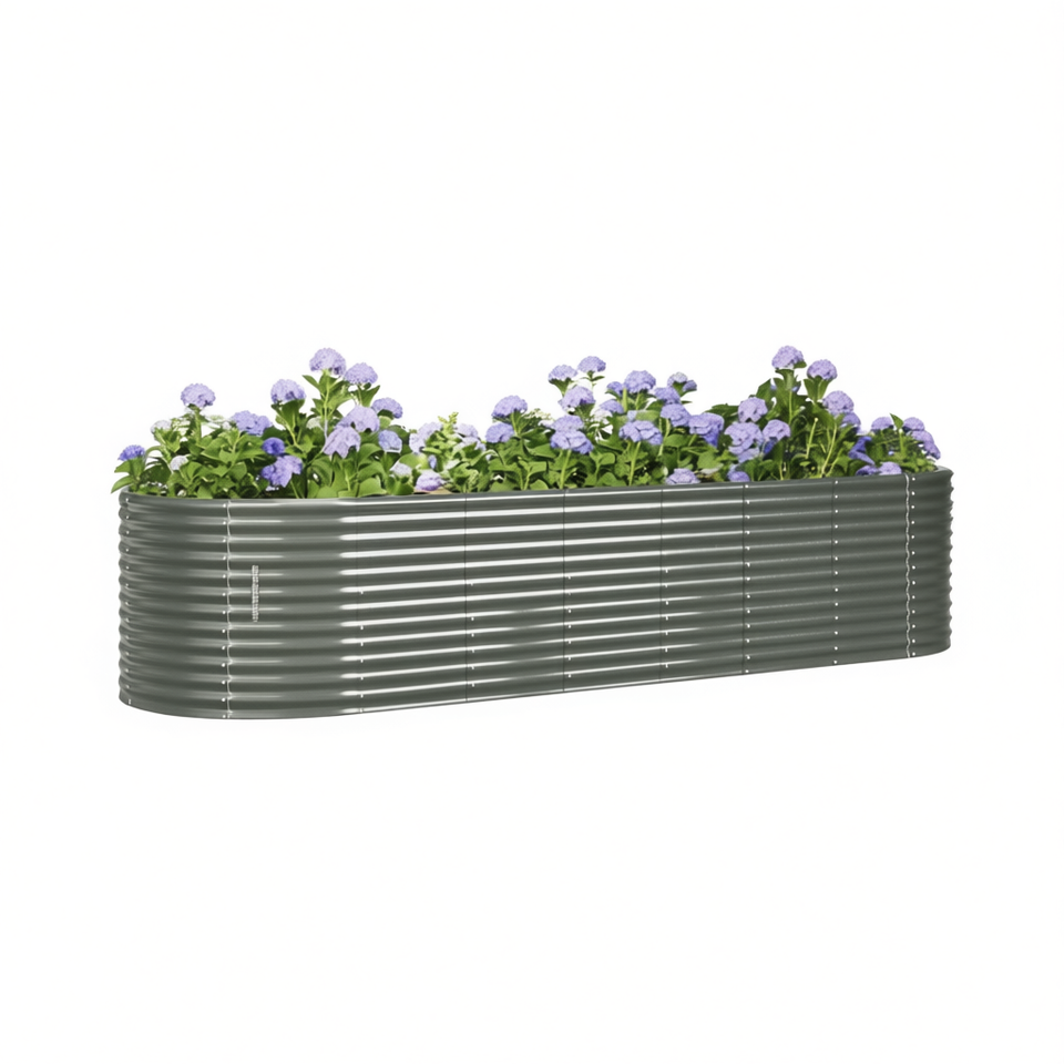 Steel Garden Raised Bed 126.8x39.4x26.8 In Gray Powder Coated Elliptical Modern Flower Pots Planters