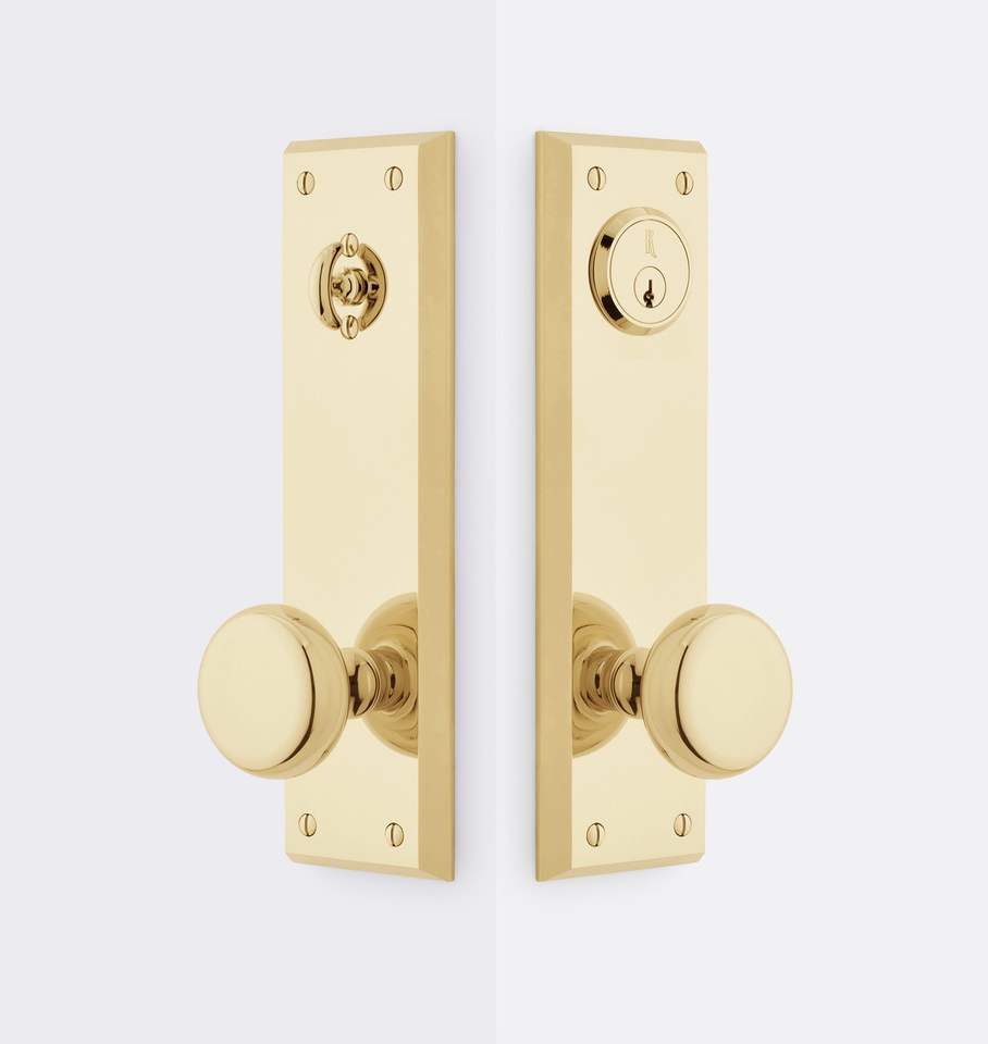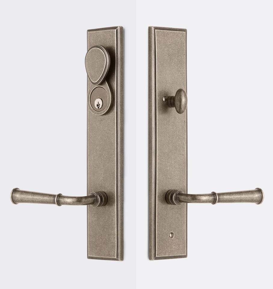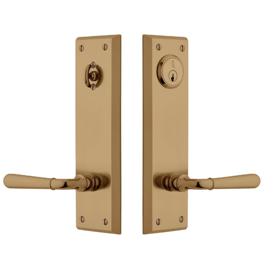 มือจับประตูเหล็กสีทองแบบคู่ สำหรับบ้าน ปรับแต่งได้ พร้อมอุปกรณ์ล็อคประตูแบบมีคันโยกและบาร์กั้นความเป็นส่วนตัว