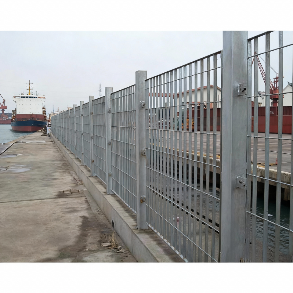 ตะแกรงเหล็กสำหรับผนังและแท่น แผงคุณภาพสูงสำหรับงานก่อสร้างและอุตสาหกรรม และรั้วเหล็กที่ท่าเรือ