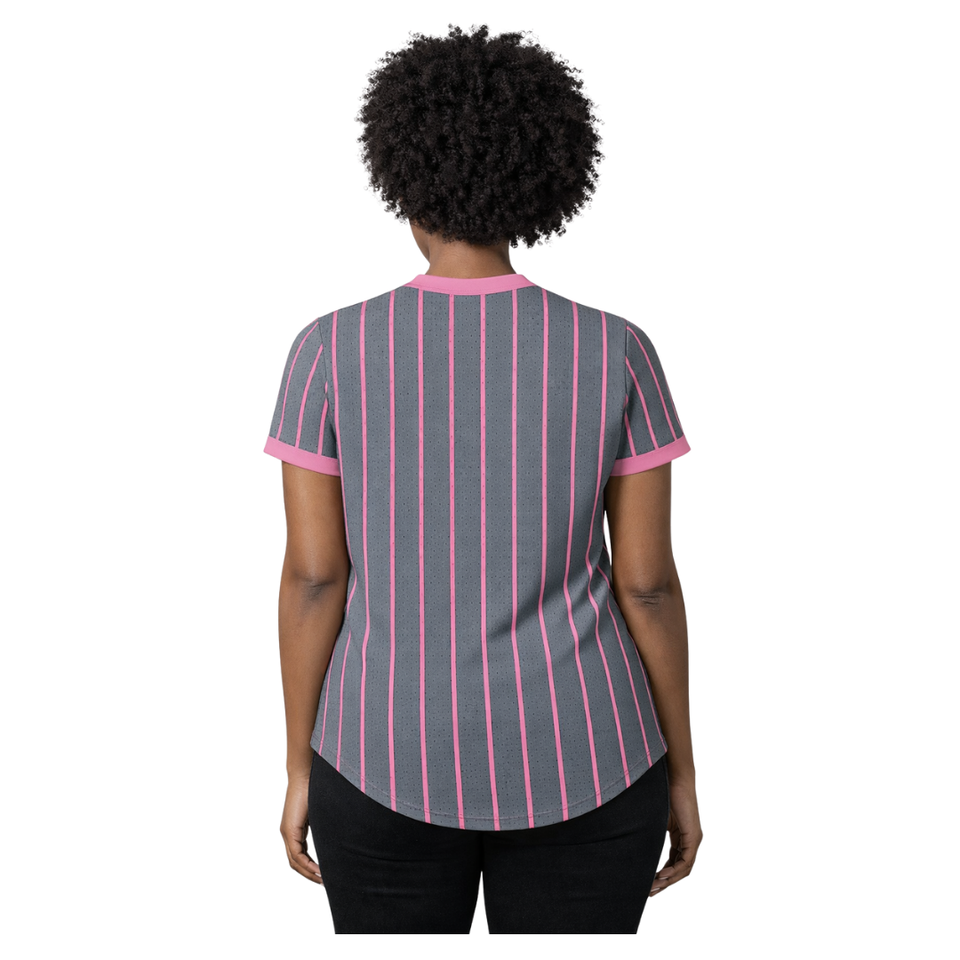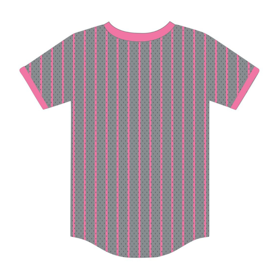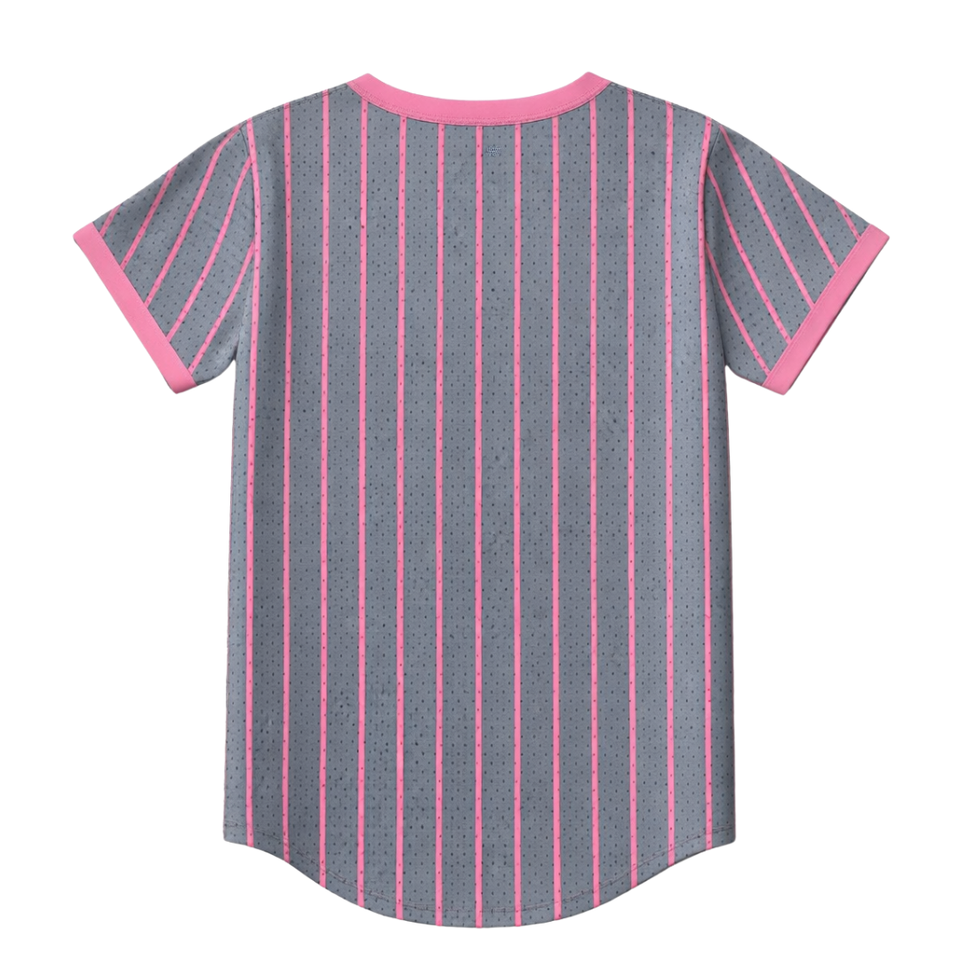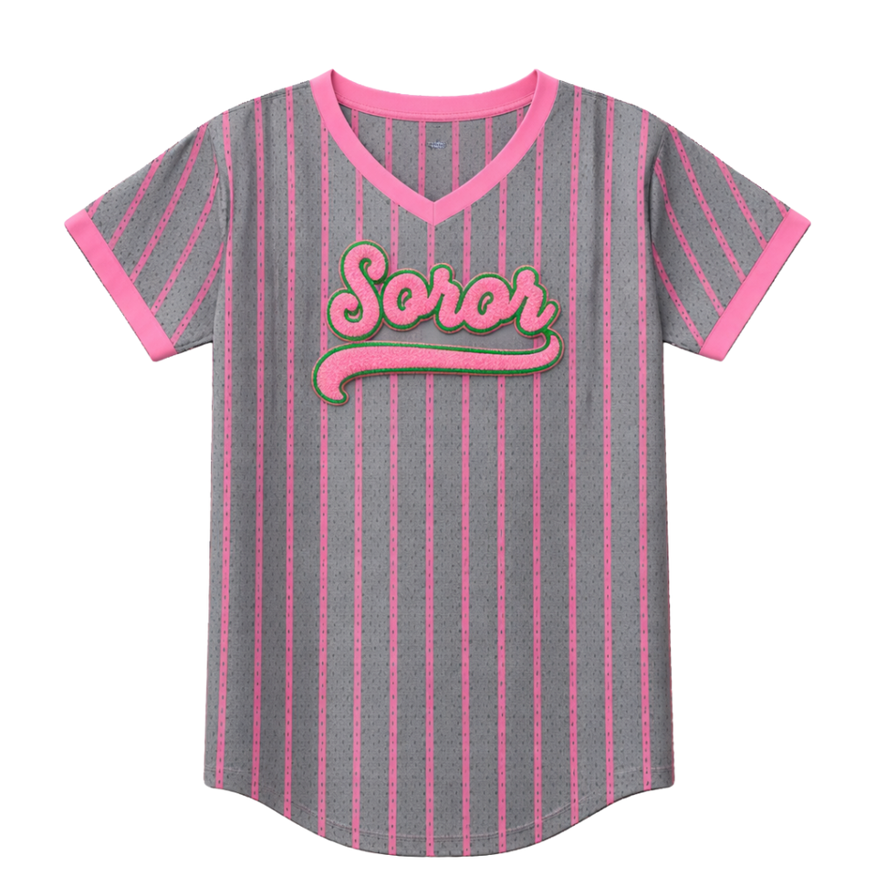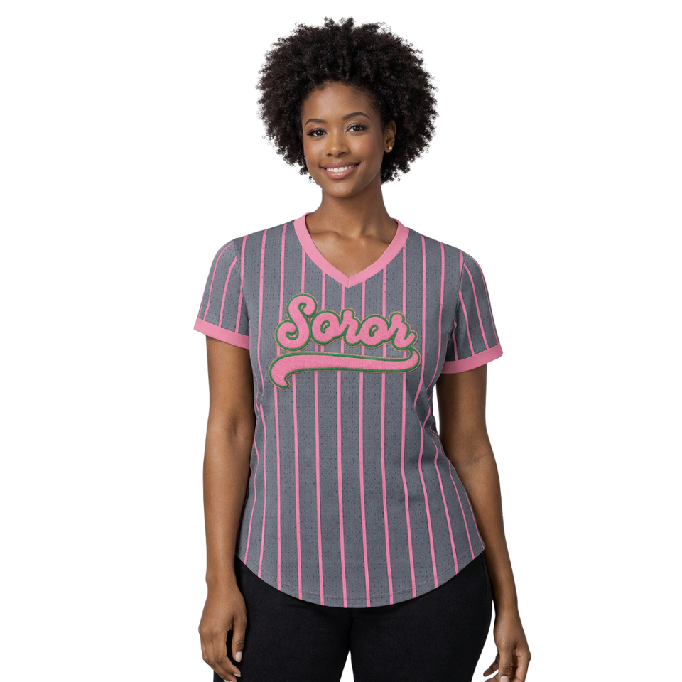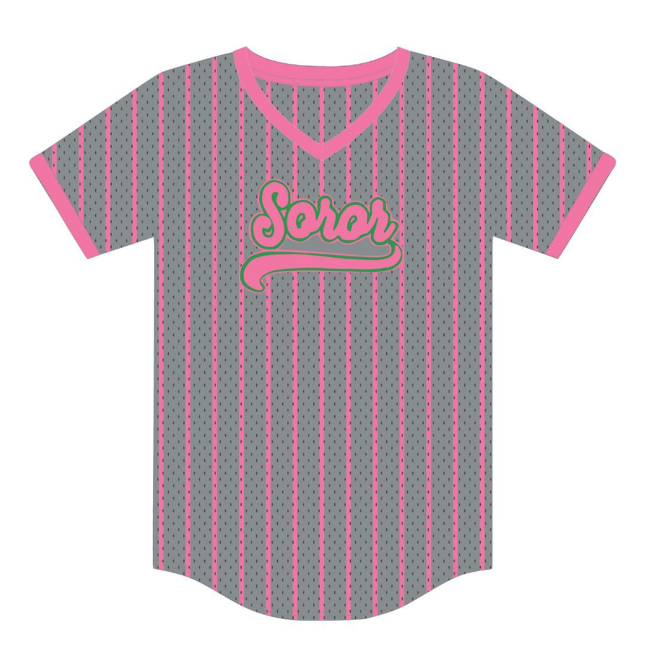 เสื้อเบสบอลสตรี สีเทาเหล็ก สไตล์ Sorority ของกรีก สีชมพูและเขียว สำหรับนักศึกษาหญิง ลำลอง ทันสมัย