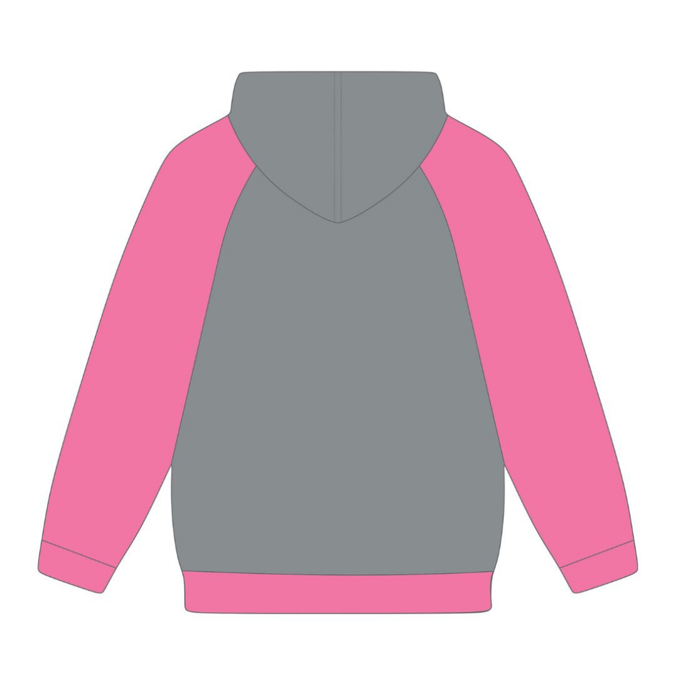 เสื้อฮู้ดแขนแร็กแลนสีเทาเหล็ก สำหรับฤดูหนาว ดีไซน์ตราสัญลักษณ์ด้านหน้า สำหรับชมรมนักศึกษาหญิง ชมรมพี่น้องนักศึกษา สีชมพู สีเขียว ทันสมัย