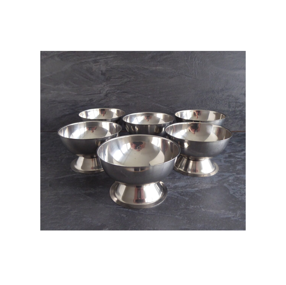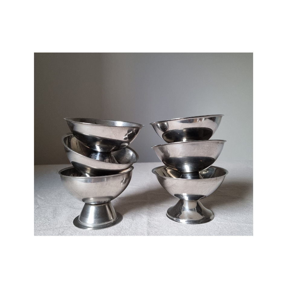 ถ้วยไอศกรีมทำจากสเตนเลสสตีลสำหรับโรงแรมและร้านอาหารพร้อมขาตั้ง6ชิ้นสำหรับงานฝีมือธรรมชาติ