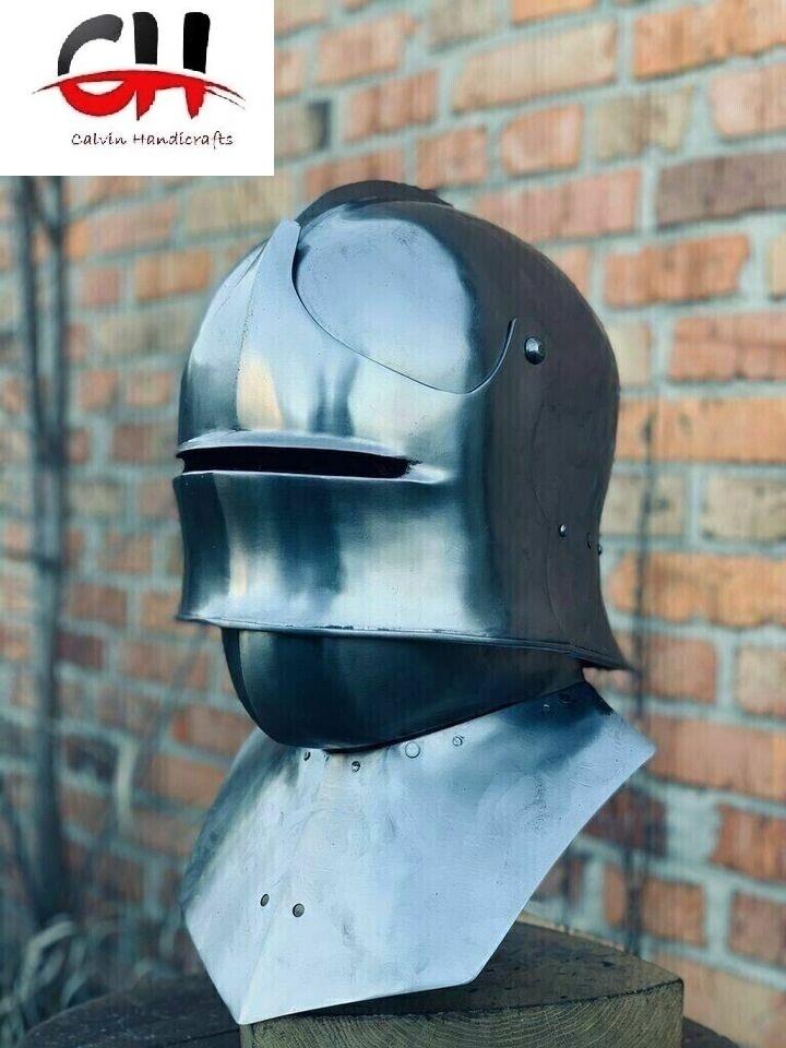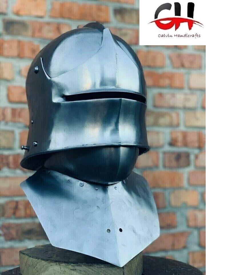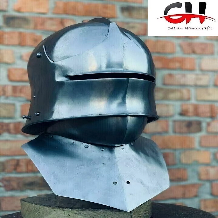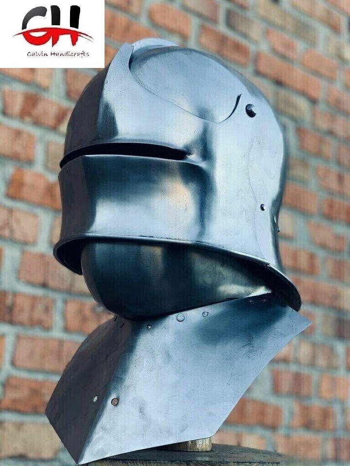 หมวกกันน็อคเหล็กกล้าเยอรมันยุคกลาง18เกจเกราะที่ทันสมัยทำด้วยมือโดยหัตถกรรม Calvin