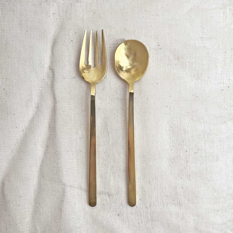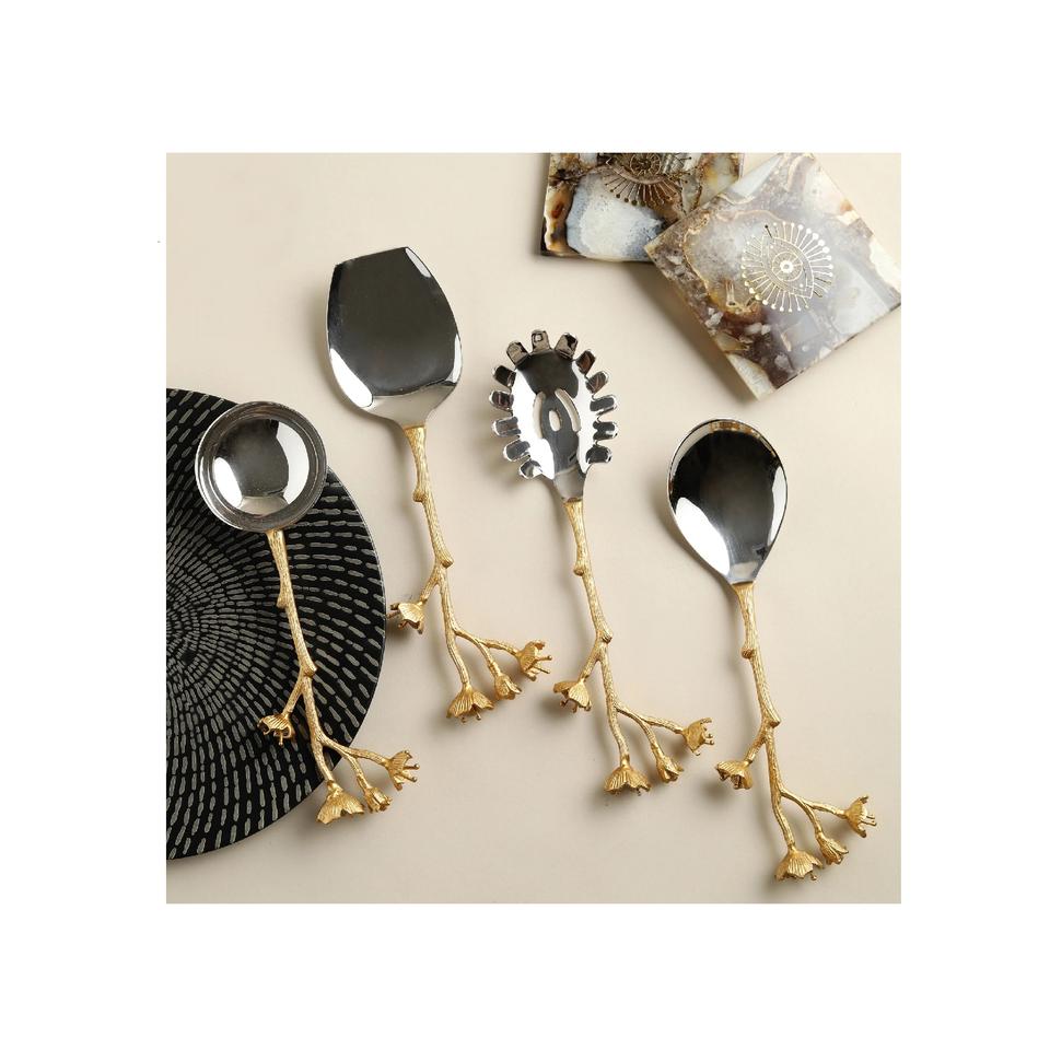 ช้อนตักสลัดทำจากทองเหลืองขนาดใหญ่สำหรับบุฟเฟ่ต์ร้านอาหารทำจากเหล็ก