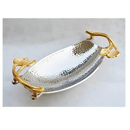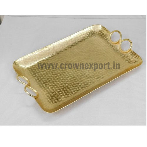 ถาดเสิร์ฟทำจากเหล็กพร้อมด้ามจับแตรถาดใส่กาแฟขัดเงารูปทรงสี่เหลี่ยมผืนผ้าสำหรับบ้านและโรงแรมมีวางจำหน่าย