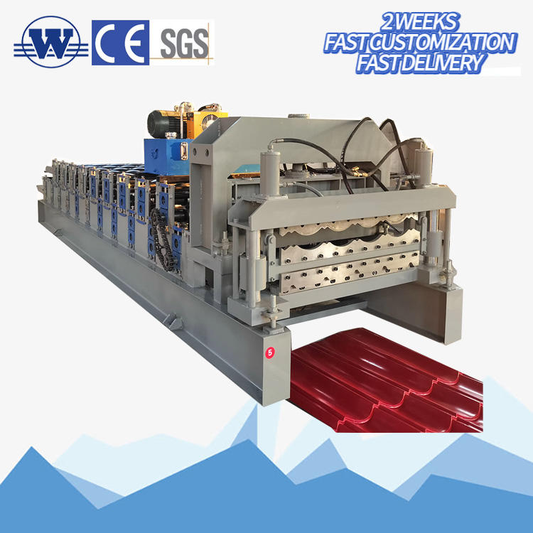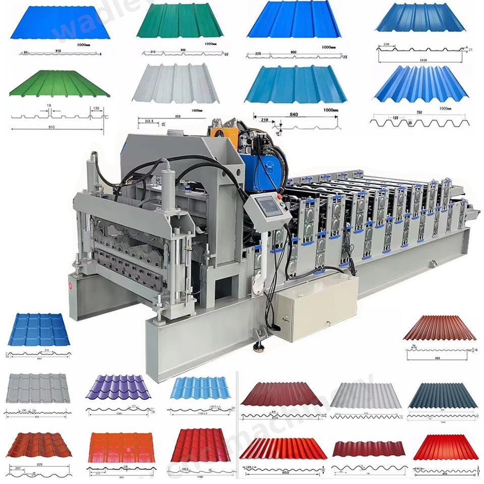 เครื่องขึ้นรูปลอนเหล็กแผ่นเหล็ก เครื่องทำแผ่นเหล็กรูปทรงสี่เหลี่ยมคางหมู เครื่องทำกระเบื้องเหล็ก เครื่องทำกระเบื้องมุงหลังคา