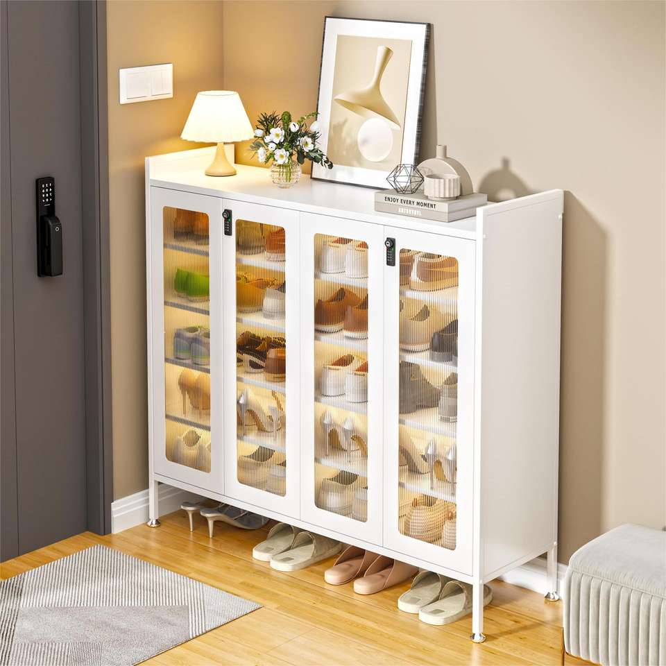 ตู้รองเท้าเหล็กความจุขนาดใหญ่หลายชั้นปรับได้กันฝุ่นชั้นเก็บของประหยัดพื้นที่สำหรับใช้ในบ้านสำหรับผู้ใหญ่